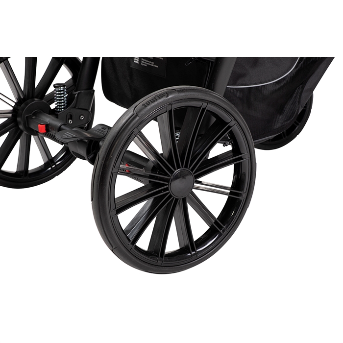 Stellet har drejelige forhjul, så vognen er let at køre med. Disse kan låses, hvis I skal ud og køre i ujævnt terræn. Håndtaget er justerbart og betrukket med blødt læder, så det er behageligt at holde ved. Styret kan vippes med 30 cm, så den laveste højde kan være på 89 cm. Under barnevognskassen er der monteret en ekstra støttefunktion, som gør vognen særligt robust og derfor velegnet til børn helt op til 3 år.