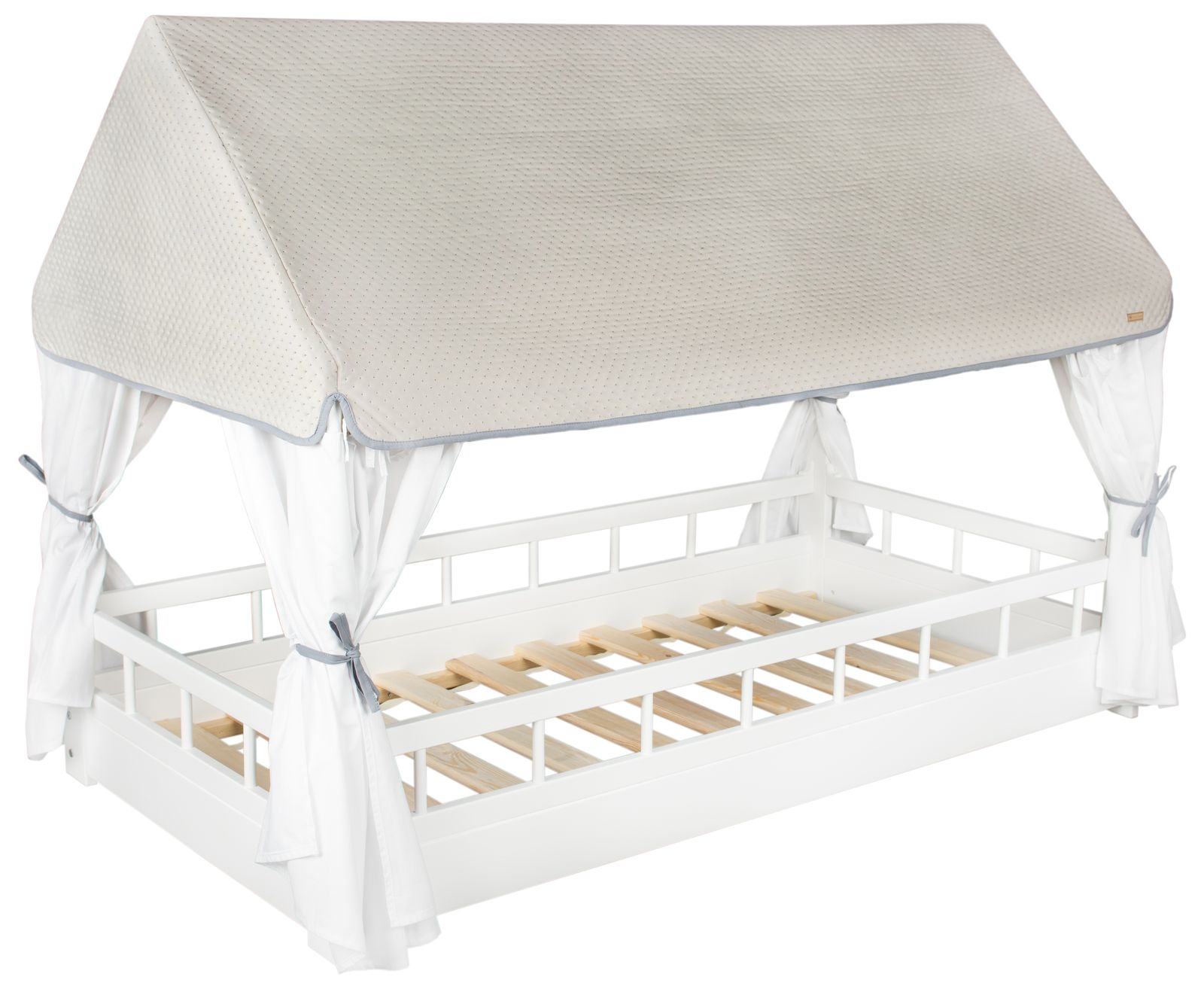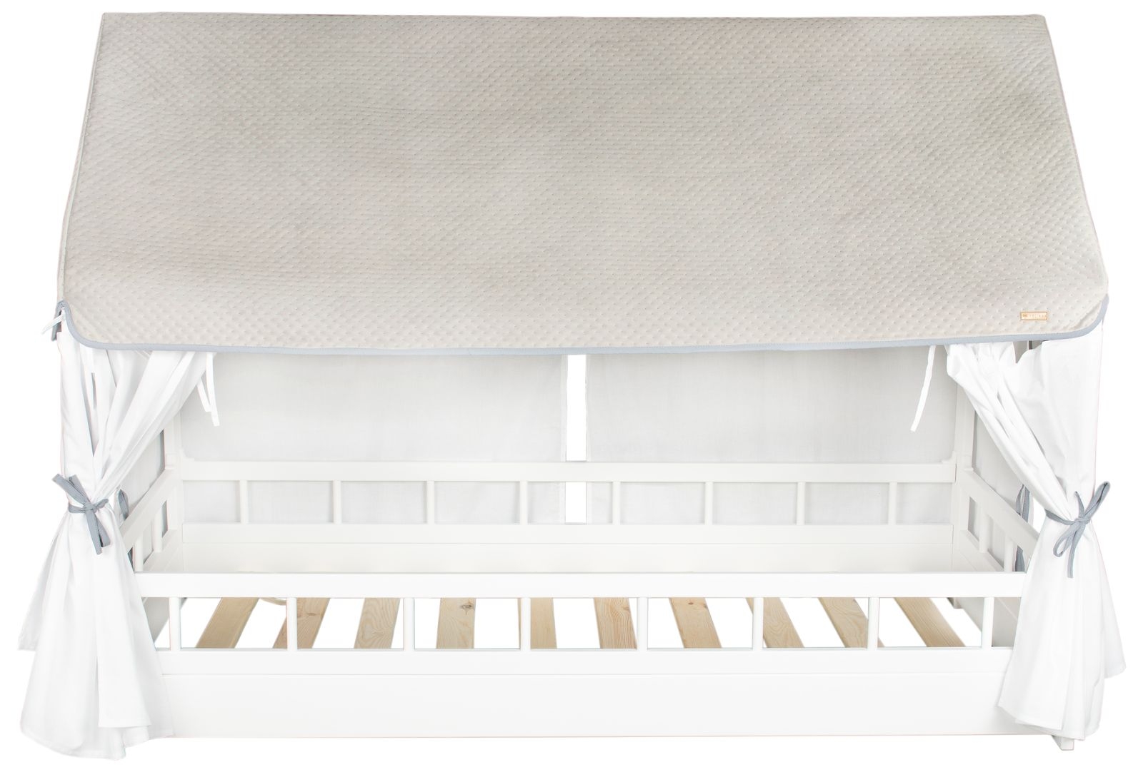 Bjælken på toppen af sengen er afrundet fra bunden, så barnet ikke kan varme hovedet i kanten og føles mere sikkert.