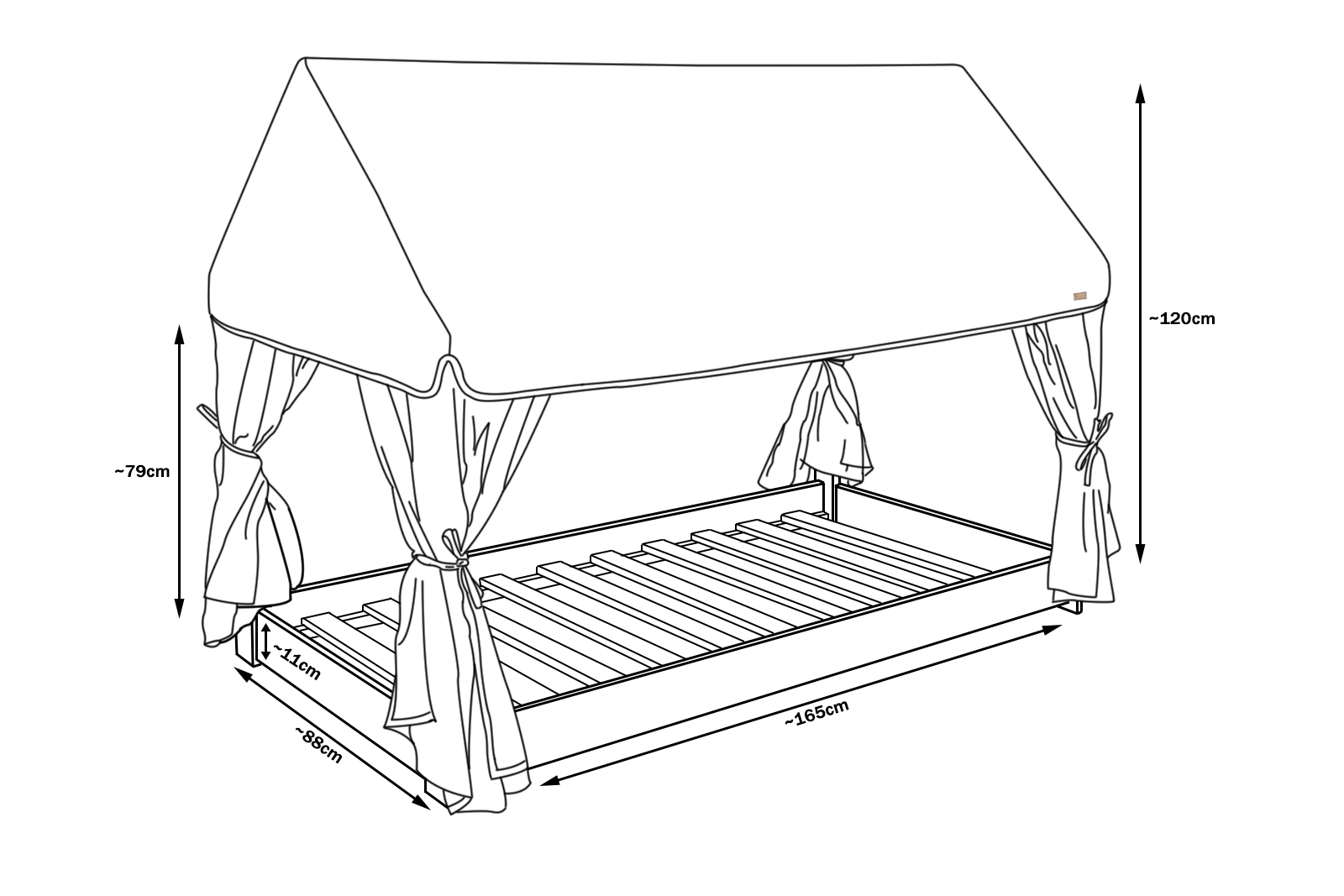 Baldakinen er lavet af slidstærkt polyester. Baldakinen og bomuldsgardinerne kan vaskes ved 30°C