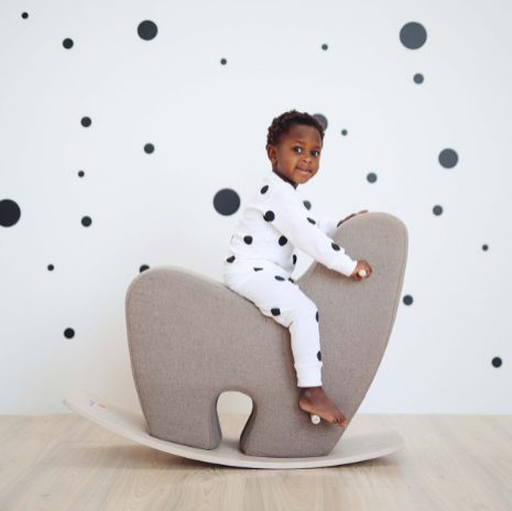 Hvem siger at en gyngehest skal ligne en rigtig hest en til en? Ikke Ooh Noo, der har designet en smuk, enkel og stilren variant af den ellers klassiske gyngehest. Bunden består af en træplade, der gør den meget stabil og "vælte-sikker". Selve hesten er lavet i skum med metalskelet. Skummet er herefter betrukket med hør, så den er rar at røre ved og sidde på. Håndtag og fodstøtter er i træ ligesom bunden af gyngehesten. Gyngehesten har vundet den eftertragtede reddot award. Her er den i en grå variant, der passer til et større barn og en legesyg voksen, da den kan bære op til 90 kilo.