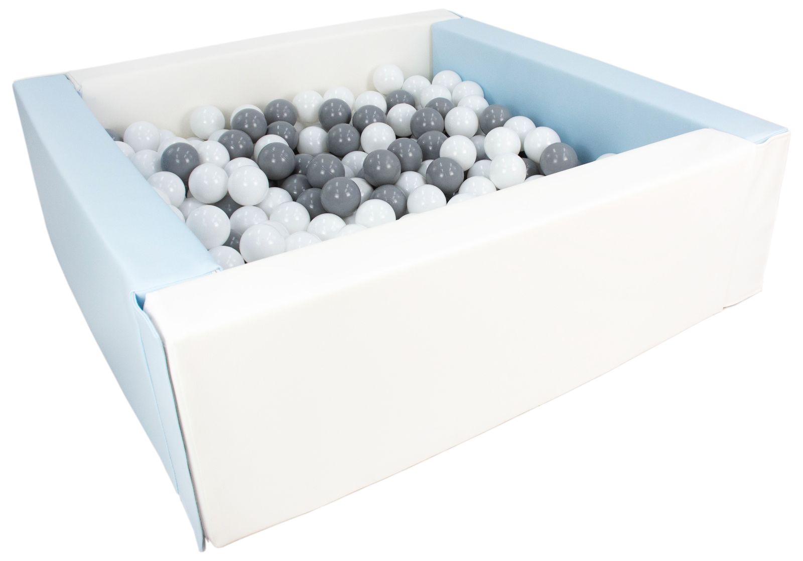 Blødt skum Bold bassin + 300 balls, Hvid/Lyseblå m. Hvide og Grå Bolde