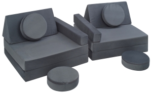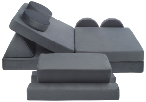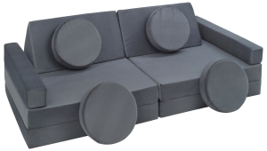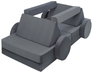 Børnesofaen kan bruges som foldemadras, et møbel til at hvile og til at sidde på og så kan den bruges til leg.