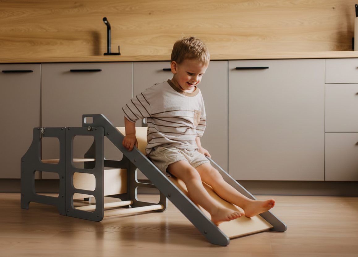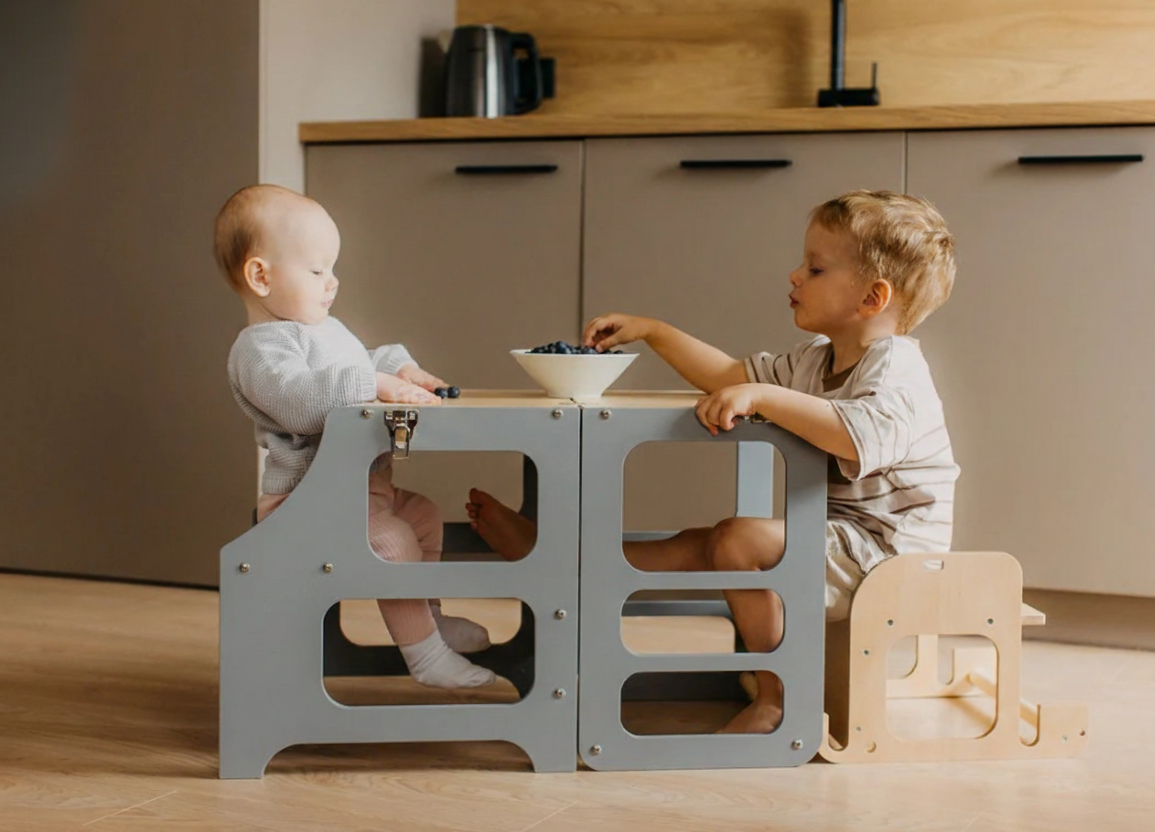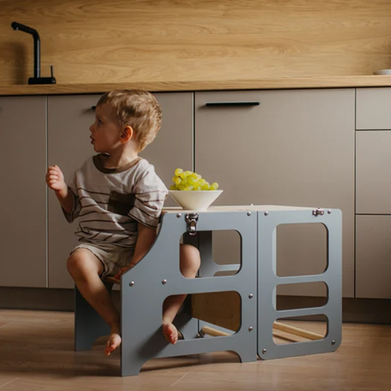 3-i-1 funktion: Udover at være et læringstårn kan Noél nemt forvandles til et praktisk bord og bænke-sæt, perfekt til tegning eller leg.