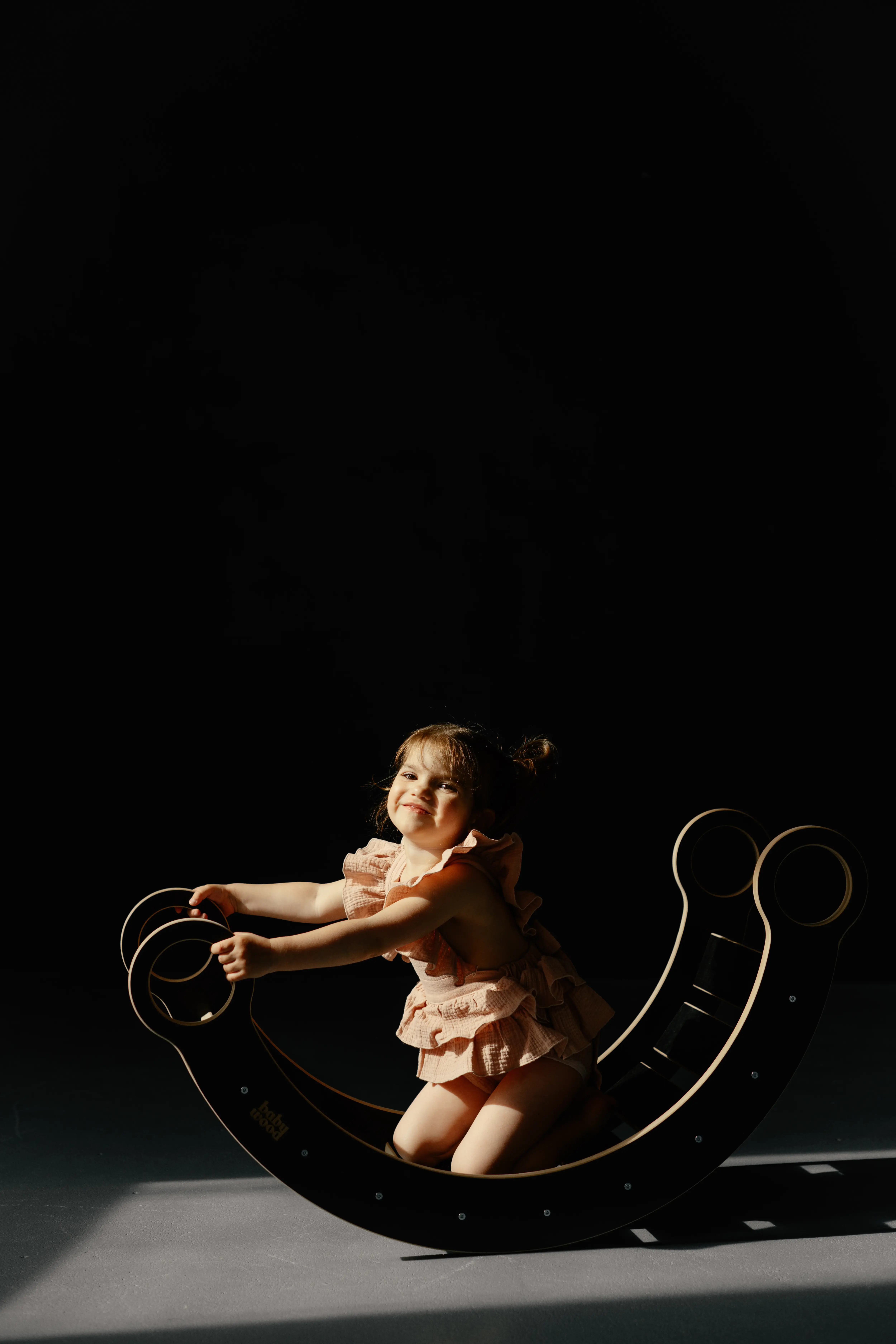 Vi bruger certificerede materialer af højeste kvalitet til at producere trævippen. I dette tilfælde er det krydsfiner med en imponerende tykkelse på 15 mm eller lamineret MDF , som gør børnerockeren ekstremt holdbar og stabil. Vi lægger også stor vægt på de små brugeres sikkerhed! Vippens fremspringende kanter er specielt afrundede, så det lille barn ikke kommer til skade under leg. Praktiske håndtag hjælper dit barn med at sætte Montessori-vippen i bevægelse eller stoppe den når som helst.
