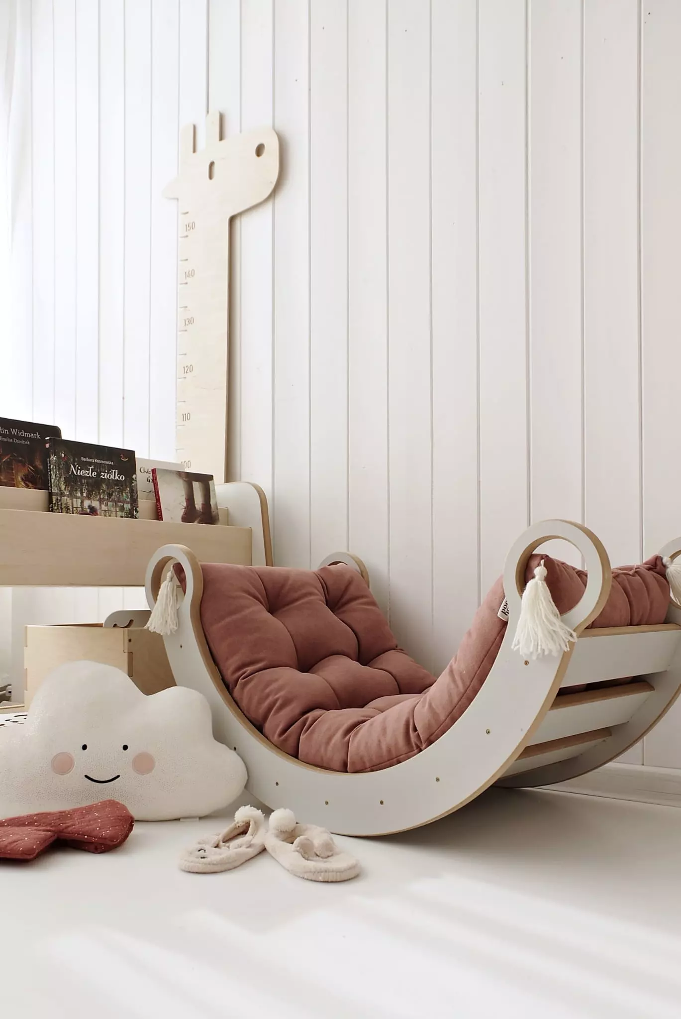 Vi bruger certificerede materialer af højeste kvalitet til at producere trævippen. I dette tilfælde er det krydsfiner med en imponerende tykkelse på 15 mm eller lamineret MDF , som gør børnerockeren ekstremt holdbar og stabil. Vi lægger også stor vægt på de små brugeres sikkerhed! Vippens fremspringende kanter er specielt afrundede, så det lille barn ikke kommer til skade under leg. Praktiske håndtag hjælper dit barn med at sætte Montessori-vippen i bevægelse eller stoppe den når som helst.