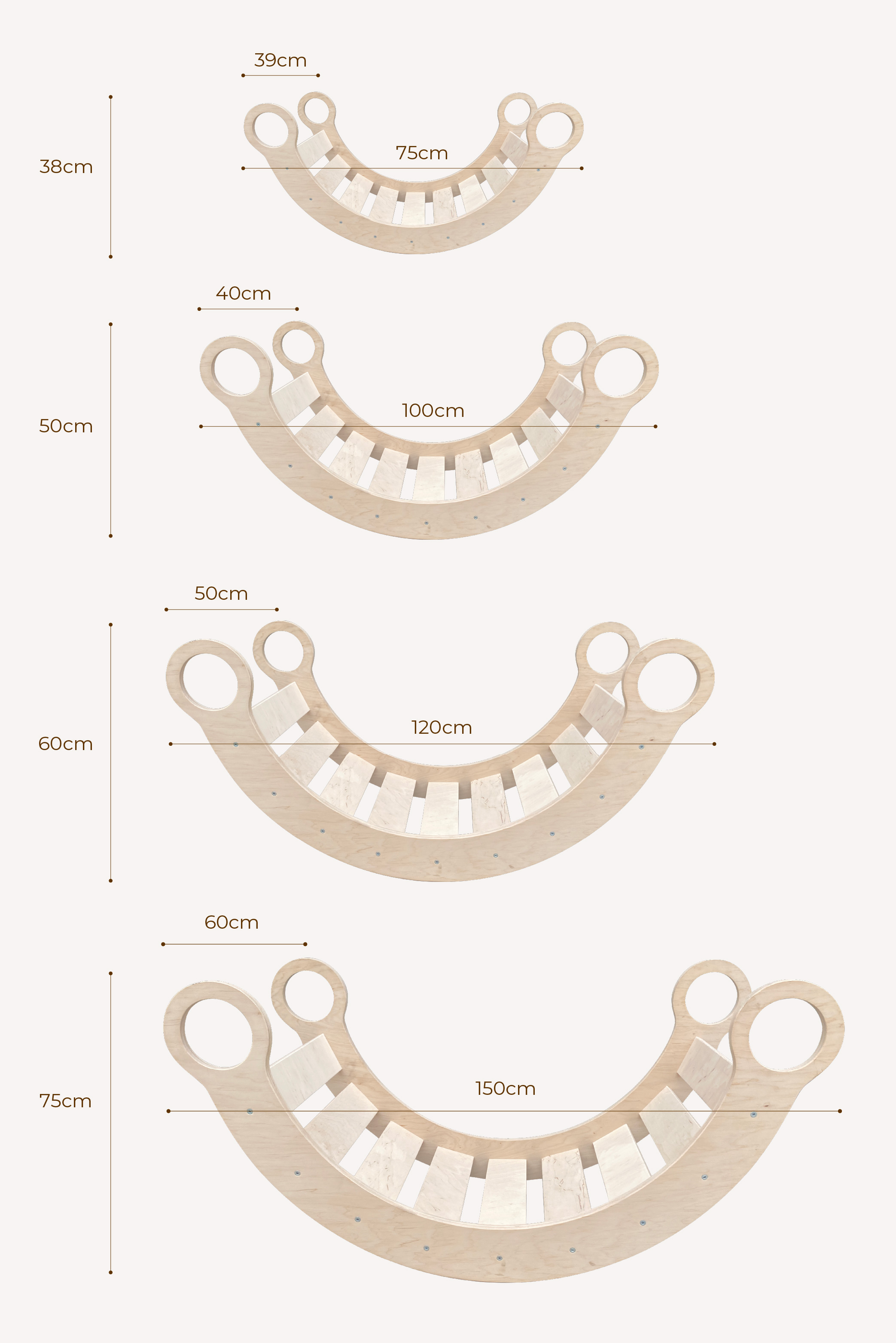 Vi bruger certificerede materialer af højeste kvalitet til at producere trævippen. I dette tilfælde er det krydsfiner med en imponerende tykkelse på 15 mm eller lamineret MDF , som gør børnerockeren ekstremt holdbar og stabil. Vi lægger også stor vægt på de små brugeres sikkerhed! Vippens fremspringende kanter er specielt afrundede, så det lille barn ikke kommer til skade under leg. Praktiske håndtag hjælper dit barn med at sætte Montessori-vippen i bevægelse eller stoppe den når som helst.